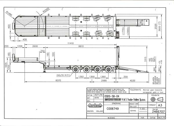 Ładunek do 50 ton, szerokość 3,5m, długość 8m plus balkon 4m, wysokość 3,5m.